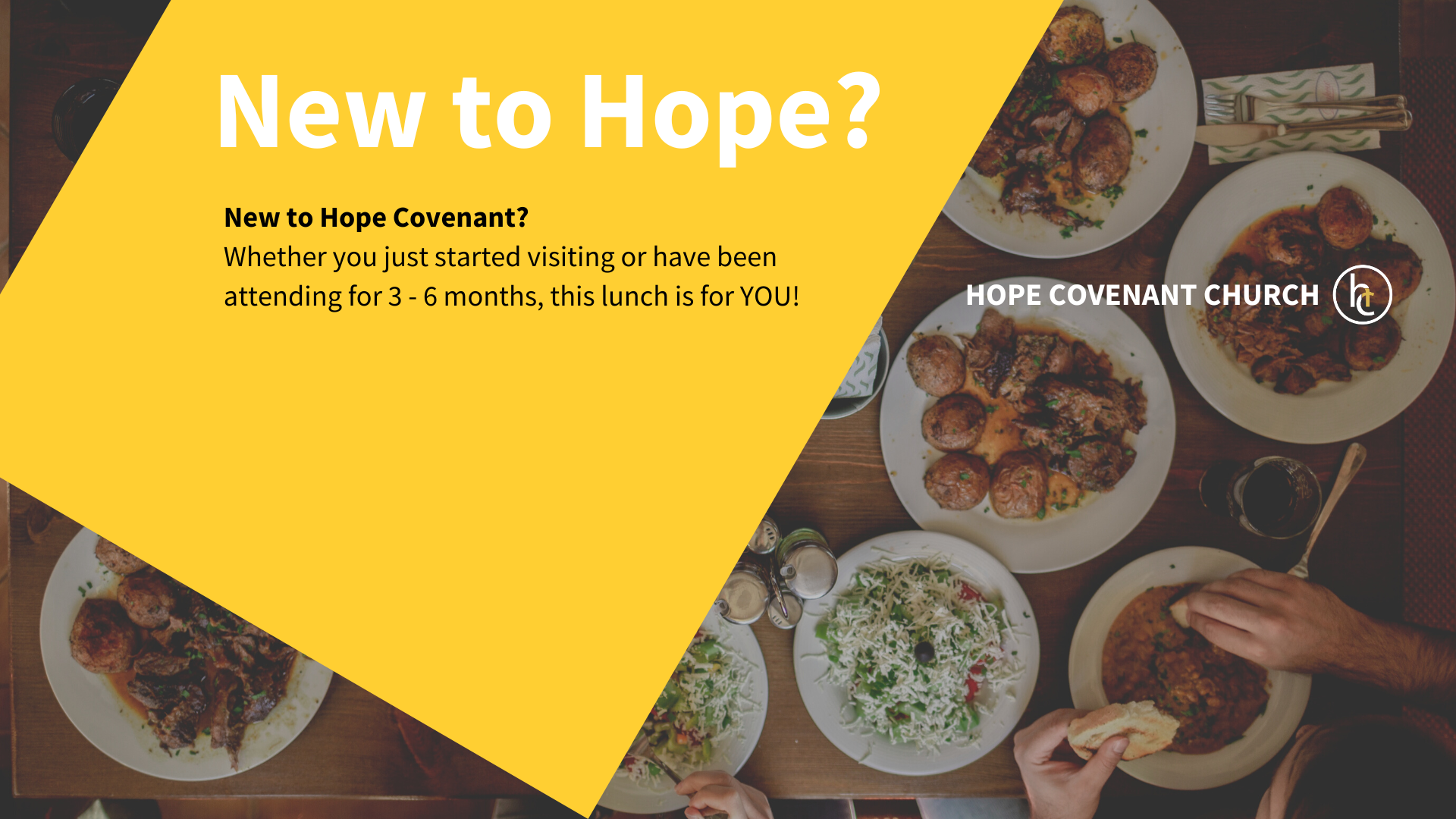 New to Hope Covenant? Just started attending or have been attending for the last 3-6 months? Then this is for you! Fill out the form and we'll match you up with an individual or family that has been coming for a while-- the hope would be that they can answer any quetsions you may have about Hope and facilitate a meaningful connection in the process.